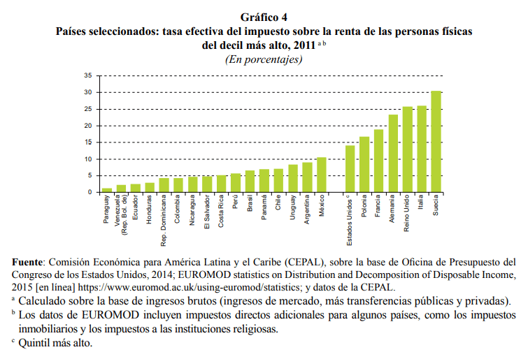 “El impuesto sobre la renta de las personas físicas logra en promedio una reducción de la desigualdad de un 2.1%, medida por el coeficiente de Gini, mientras que en 27 países de la Unión Europea la reducción es del 11.6%”[5]