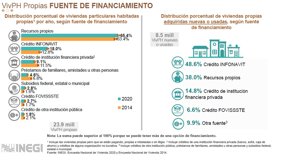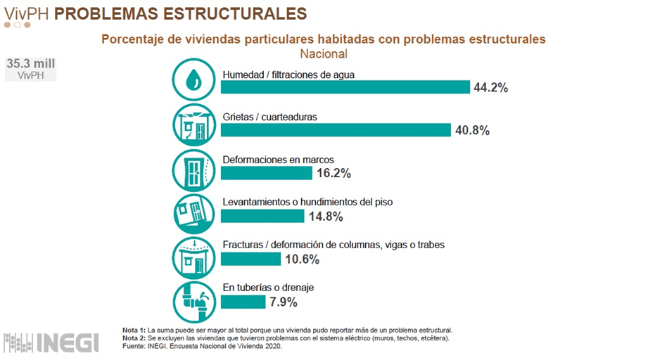 Según la última encuesta del INEGI (2020) en el estado sonorense se dan condiciones particulares, ya que el 84.4% por ciento han sido adquiridas, o están siendo usadas, por medio de un crédito Infonavit. Respecto a las condiciones 35.9% cuentan con problemas de grietas o cuarteaduras en techos y muros de su estructura, además de problemas estructurales de humedad o filtraciones de agua en cimientos, muros o techos.